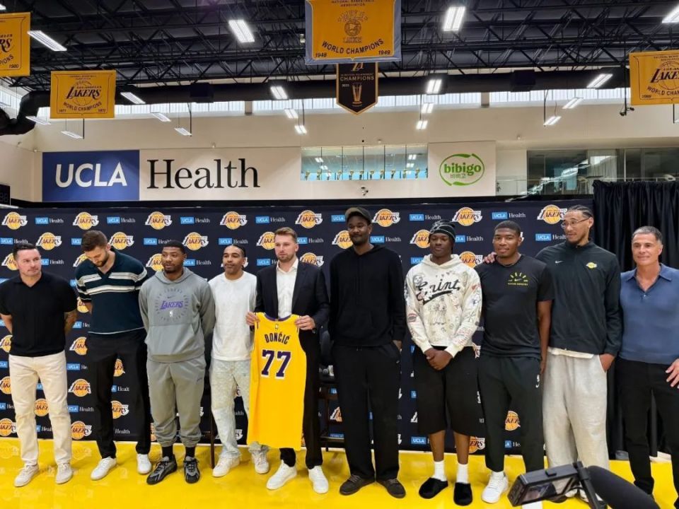 今天的续约发布会,多名湖人球员到场支持东契奇:克莱伯、斯玛特、文森特、艾顿、范德比尔特、阿杜-蒂耶罗、八村塁、海斯。文森特刮了胡子,差点没认出来。湖人新援拉拉维亚没能到场,他在社交媒体向东契奇送上祝福。